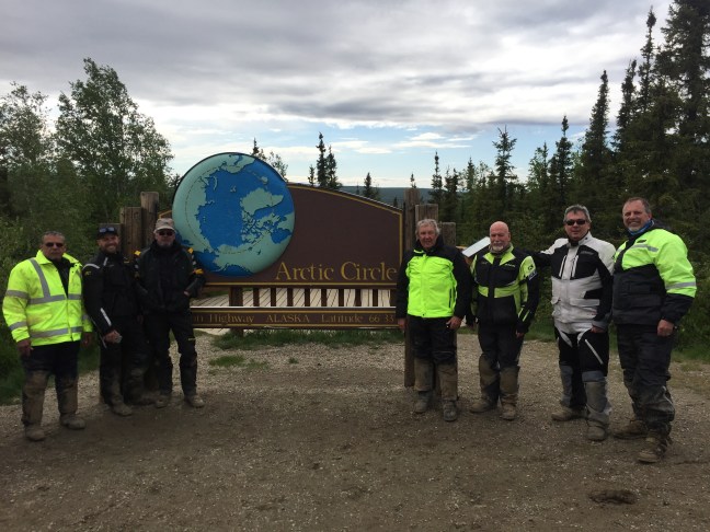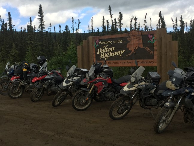 - Tuesday Toured oil fields (beginning of Alaska Pipeline) and Prudhoe Bay in the morning, plunged into Arctic Ocean…froze hiney off in the process! Rode back to Coldfoot and had lunch at Happy Valley. Happy Valley to be renamed to Grumpy Valley, or Nasty Valley, as we were chased out by screaming man since facility is private and he was tired of people coming to him for rescue. We stopped here on way up and no issues. We parked over on opposite side of big area, huddled together behind an old dilapidated building to break 50 mph winds and air temps at freezing, good clip of snow coming down. Everyone frozen and trying to warm up for ride to Atigen Pass, unsure if pass was passable due to snow. Moons aligned, God was good, and southern wind blowing on Atigen and no snow, only dry fast roads all the way back to Coldfoot.