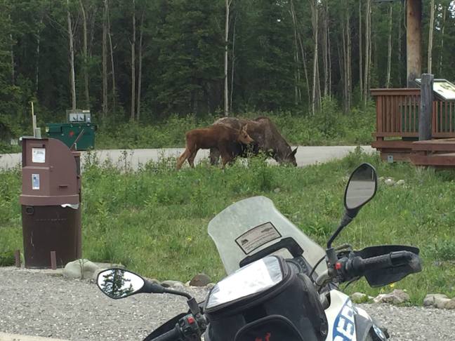 - Friday Tanglewood to Cantwell (Denali National Park) all dirt ride, no rain finally!!!…dry fast roads, definitely felt like some baja action. Toured Denali in afternoon, yet Mt. Mckinley Denali clouded in and no view. Saw big momma moose with one calf.