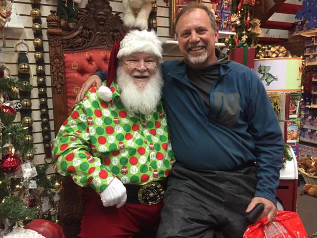 - Wednesday Coldfoot to Chatanika – Dry on ride down, had great lunch beside Yukon River. Dark clouds and rain ahead, yet rain waited until we were off the Dalton highway and back on asphalt. Stayed at Chatanika Inn, old roadhouse, Christmas themed with Santas, mucho Christmas lights, etc. 30 miles from North Pole, Alaska, must be reason for the theme. Great steak potatoes dinner at Night.